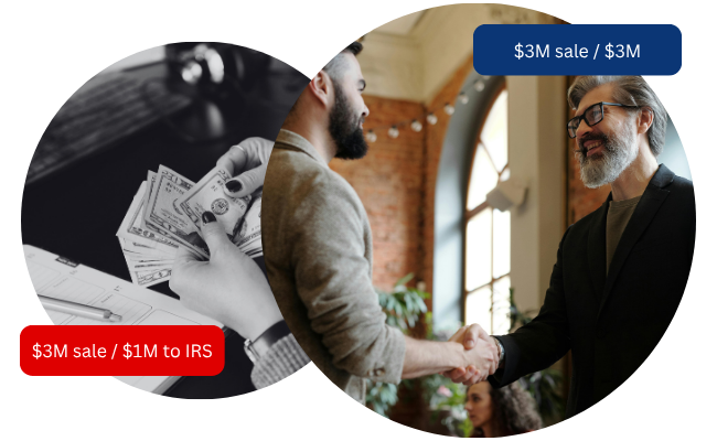 You’ve spent decades building your business. One transaction threatens to strip half of it away. At the finish line, the IRS waits to claim 35–50% of your sale.